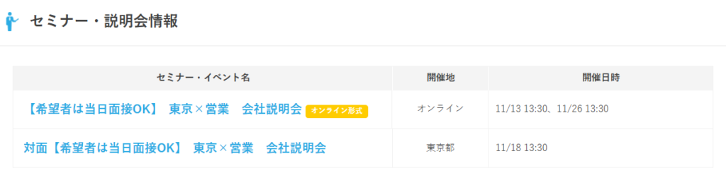 募集状況や説明会の日程は支社ごとにご案内させていただいております。説明会日程や、条件等はナビサイト『Re就活キャンパス』よりご確認ください。